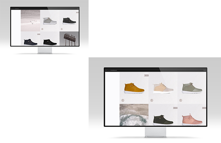 the product is scaled up and presented on a clean background highlighting their unique details. scroll down reveals product images while keeping info on top left and the navigation stationary.