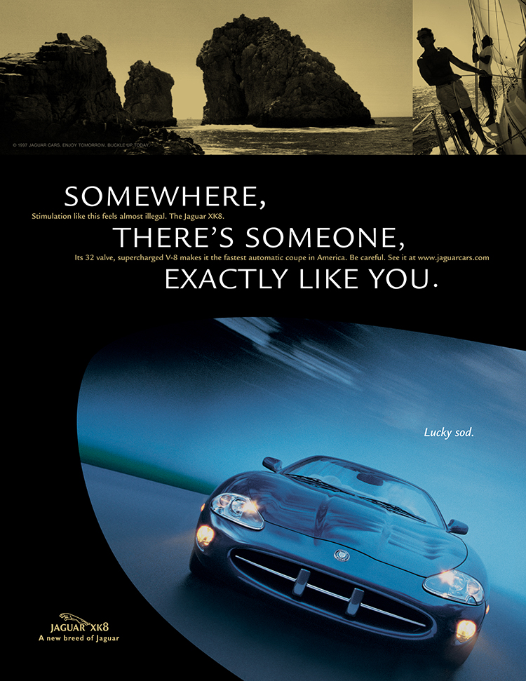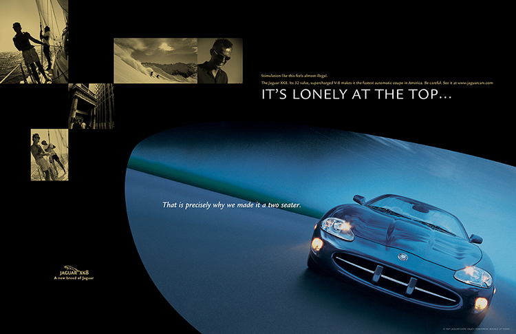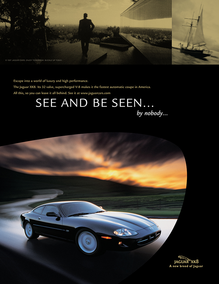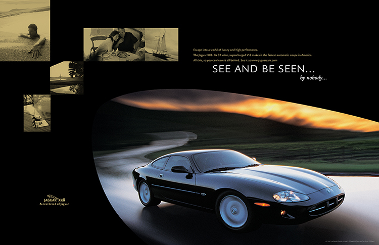 messaging for the new jaguar XK8 coupe. this campaign was conceived under the creative direction of ucef hanjani during his tenure at ogilvy & mather new york. it was one of the first campaigns for jaguar cars to infuse the brand with a sense of fashion and lifestyle. the copy ensured there was plenty of wit and attitude, with room to spare…. photographed across the united states and mexico, from snow-capped mountains to white-sand beaches, the campaign helped showcase the expanded range of models, as well as re-certified models. as a result, future ads built on this positioning, solidifying jaguar as one of the most fashionable names in the luxury automotive world. view all work for jaguar or view all work for automotive.