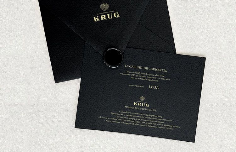 a printed invitation for current krug clientele, as well as select mailing-lists (amex black and the like), requesting members to join-in on this special community site.