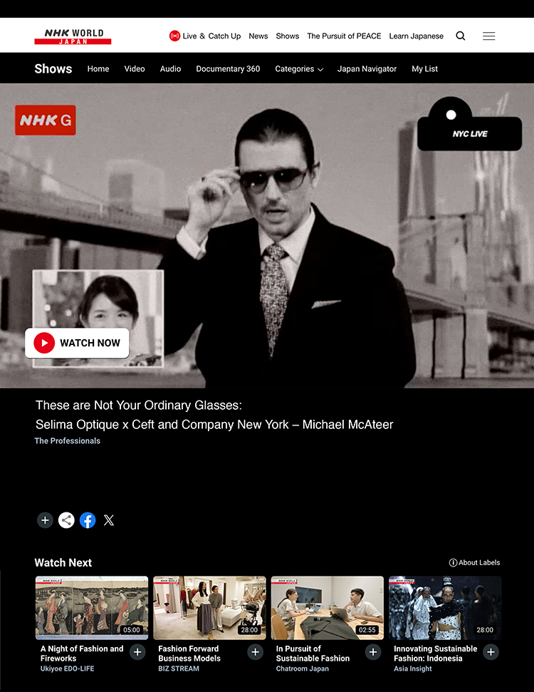 - press: big in japan… selima optique interview on japan’s public television NHK"selima salaun (selima optique) and ucef hanjani (ceft and company new york) working together in the development of the S+CC01 limited edition frames which had to be hand made and hand polished due to the nature of the many facets across the face and temples of the frames. only 100 will be manufactured under edition one. each frame will be individual numbered and stamped 1/100 to 100/100..." Read more: press: big in japan… selima optique interview on japan’s public television NHK