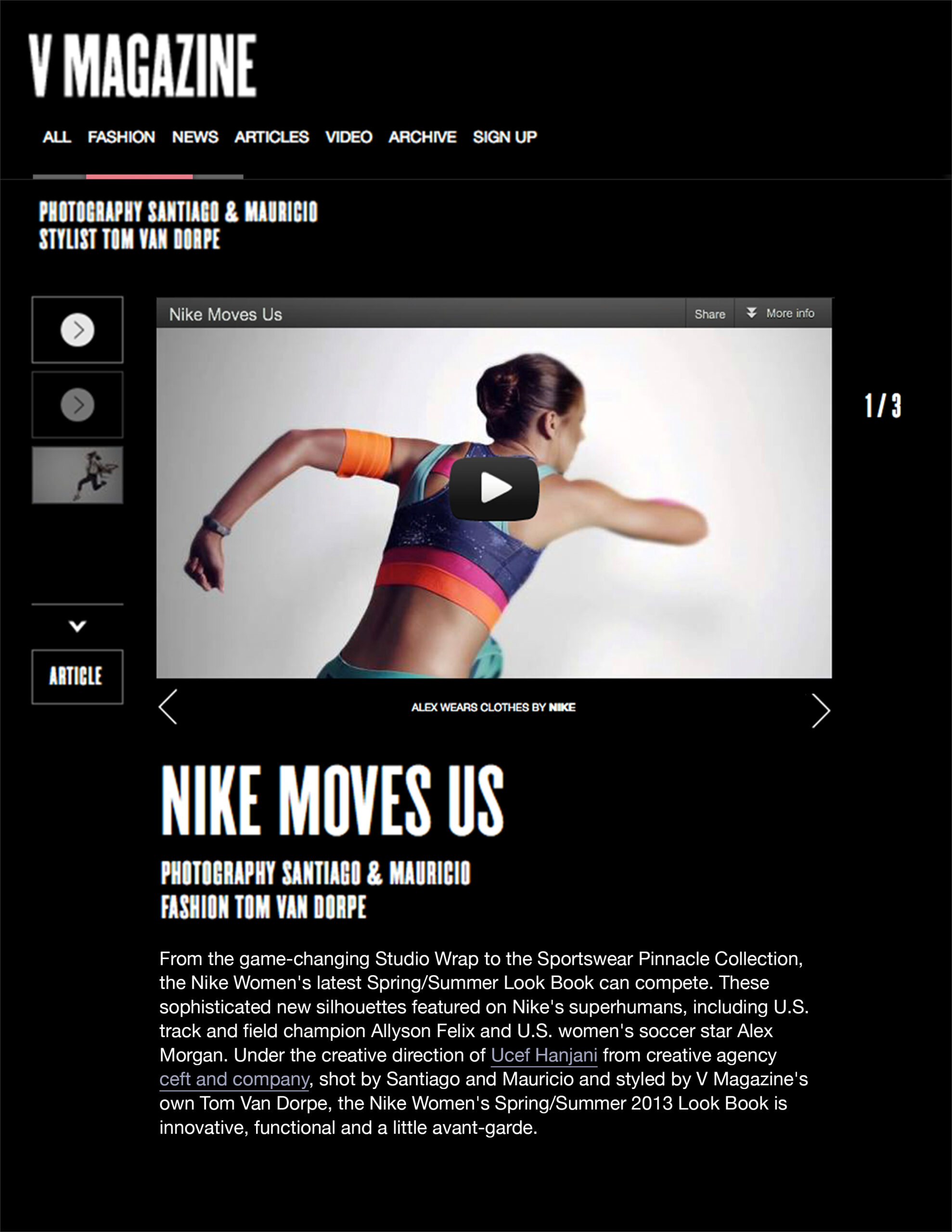 ceft and company engaged with renowned photographers santiago and mauricio for this stunning nike women’s project. featured here in v magazine, the lookbook featured olympians modeling the new line of sportswear. view all work related to this project.
