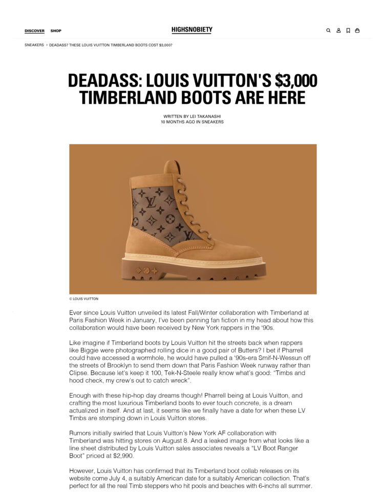 “ever since louis vuitton unveiled its latest fall/winter collaboration with timberland at paris fashion week in january, i’ve been penning fan fiction in my head about how this collaboration would have been received by new york rappers in the ’90s.